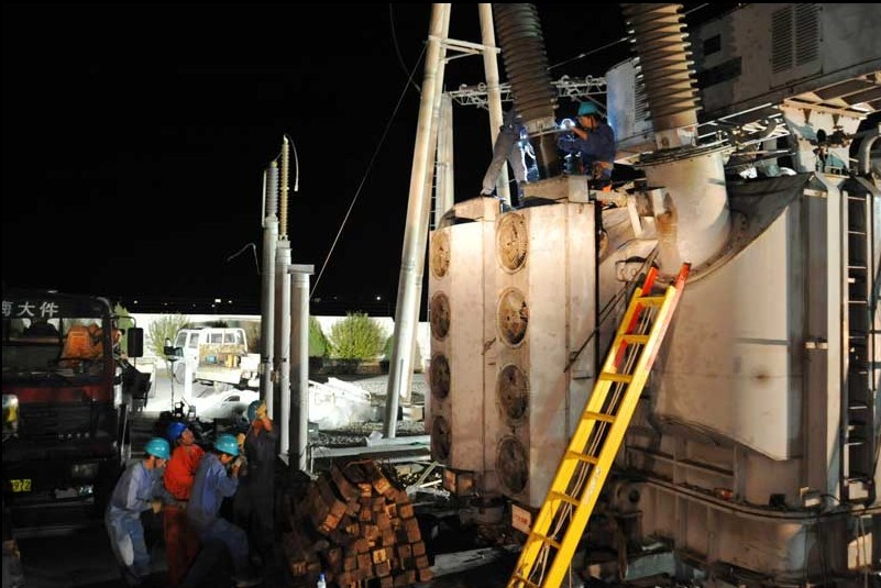 按秋檢計(jì)劃,10月份,220千伏石島站2#主變返廠大修,為規(guī)避220千伏變電站單主變運(yùn)行所可能發(fā)生的用電隱患隱患,威海供電公司在2#主變起裝返廠的同時(shí),在220千伏文登站緊急起運(yùn)該站備用主變到石島站,該公司檢修工區(qū)作業(yè)人員,分為兩組,人輪休,工作進(jìn)度不間斷,用五天四夜的時(shí)間,完成了石島站2#拆卸起運(yùn)和文登站備用主變的拆卸起運(yùn)以及在石島站的安裝調(diào)試,10月14日的24小時(shí),是他們這次攻堅(jiān)工作五天四夜里最為繁忙的24小時(shí),記錄下的幾個(gè)片段,只是他們一整天繁忙工作的幾個(gè)縮影。