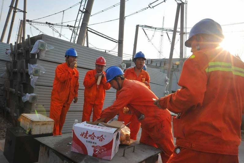 晚22時(shí),主變所有附件安裝完畢,作業(yè)人員小小的松了口氣,另大家興奮的是細(xì)心的工區(qū)陶書(shū)記早就叮囑后勤人員驅(qū)車(chē)十多公里給大家買(mǎi)了夜宵,宋飛飛是在變壓器上作業(yè)的幾個(gè)技術(shù)人員之一,吃晚飯的時(shí)候也沒(méi)有顧得下來(lái),捧著一份盒飯吃的時(shí)候離吃的上頓飯已經(jīng)過(guò)去了9個(gè)多小時(shí),不到三分鐘就吃掉了一份盒飯,我問(wèn)他,宋師傅,都什么菜你知道不?他嘿嘿一笑,回答的很干脆,不知道!然后又拿起一份盒飯來(lái),邊嘿嘿的笑,邊狼吞虎咽的吃。