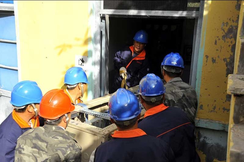 從挖坑、搬桿、運(yùn)桿、立桿到配電盤(pán)的運(yùn)輸,他們從國(guó)慶假期開(kāi)始,已經(jīng)忙活了10多天,今天他們面臨的一項(xiàng)任務(wù)是將兩面控制盤(pán)運(yùn)進(jìn)位于該村狹小窄巷的配電室,由于20多年前規(guī)劃的配電室太狹窄,而今年的網(wǎng)改新設(shè)備又高又大,他們只能依靠人工翹扛挪動(dòng)力量,一點(diǎn)點(diǎn)挪動(dòng)運(yùn)輸,經(jīng)過(guò)大家齊心協(xié)力,終于將配電盤(pán)和電容柜盤(pán)運(yùn)進(jìn)到位。緊接著,大家又奔赴抄表收費(fèi)和其他網(wǎng)改的運(yùn)輸現(xiàn)場(chǎng)。