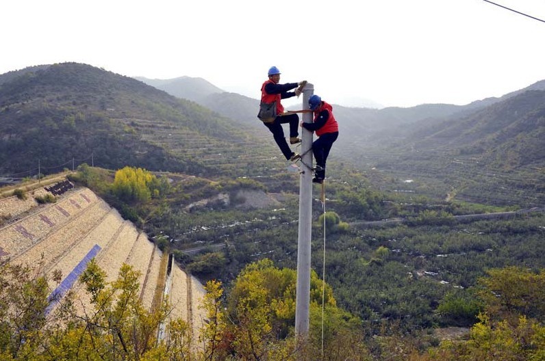 圖為:10月21日周末,棲霞市蘇家店供電所在通往大山深處的林家村網(wǎng)改現(xiàn)場。