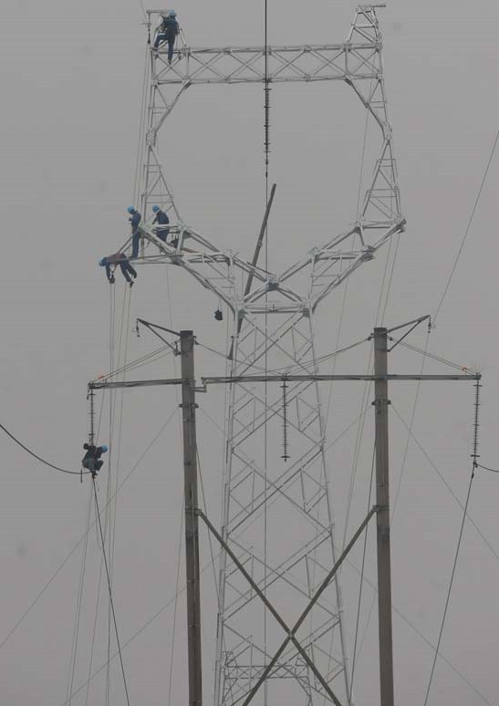 在安徽省定遠(yuǎn)縣池河鎮(zhèn)劉鋪村,國(guó)家電網(wǎng)安徽滁州供電公司的電力工人在50多米的高空冒著細(xì)雨進(jìn)行架線(xiàn)作業(yè)。當(dāng)日,隨著鳳(陽(yáng))定(遠(yuǎn))2858輸電線(xiàn)路的最后一根架空導(dǎo)線(xiàn)架設(shè)完成,安徽省滁州電網(wǎng)“迎峰度冬”7號(hào)工程——220千伏蚌埠市鳳陽(yáng)縣變電站至220千伏滁州市定遠(yuǎn)縣變電站技改輸電線(xiàn)路實(shí)現(xiàn)全線(xiàn)貫通。該線(xiàn)路全長(zhǎng)約24公里188基鐵塔,將為滁州地區(qū)冬季高峰用電起到積極保障作用,把確保城鄉(xiāng)居民冬季用電放在首位。此次技術(shù)改造后將進(jìn)一步提高滁州地區(qū)電網(wǎng)的輸電能力,有效應(yīng)對(duì)皖東地區(qū)今冬用電高峰,為當(dāng)?shù)亟?jīng)濟(jì)發(fā)展提供強(qiáng)有力的電力保障。