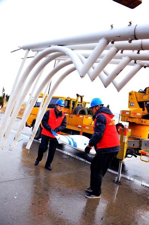寒風(fēng)呼嘯,大雪飄飄,棲霞公司路燈全體干部員工按照市政府的部署和公司統(tǒng)一安排,圓滿完成209省道太虛宮立交橋至松山高速公路出口段單邊26公里500基路燈的拆撤施工任務(wù),比市政府要求的工期提前17天完成任務(wù)