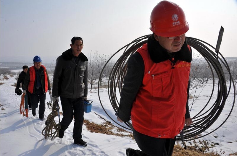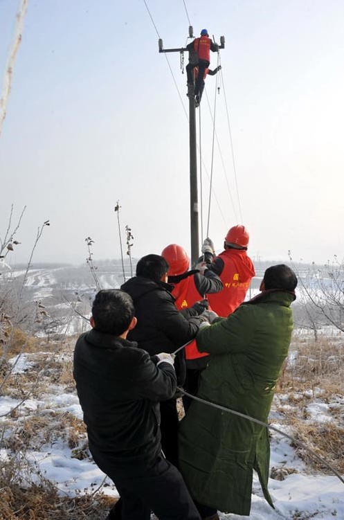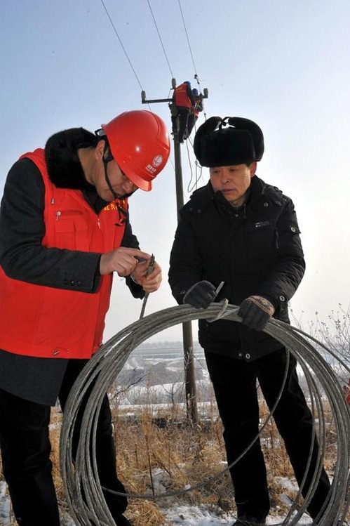農(nóng)歷正月初四,國家電網(wǎng)山東棲霞供電公司員工在10千伏陽谷線——超市專供雞場支線緊急搶修C相斷線?! ‘?dāng)日,凌晨5:50,棲霞供電楊礎(chǔ)供電所的值班電話緊急響起,轄區(qū)大客戶雞場經(jīng)理王希濤緊急打電話:雞場停電