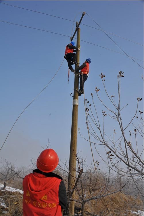農(nóng)歷正月初四,國家電網(wǎng)山東棲霞供電公司員工在10千伏陽谷線——超市專供雞場支線緊急搶修C相斷線。