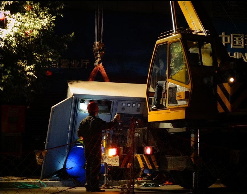南川供電公司將南大街的皇宮1號箱變由315千伏安換成了630千伏安,確保人民群眾春節(jié)期間安全用電。為避免居民用電不受影響,該公司將換裝時間定在夜深人靜的凌晨開始。經(jīng)過一個半小時的奮力搶修,更換該箱式變壓