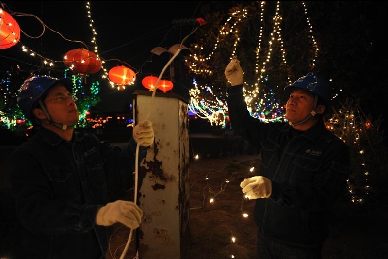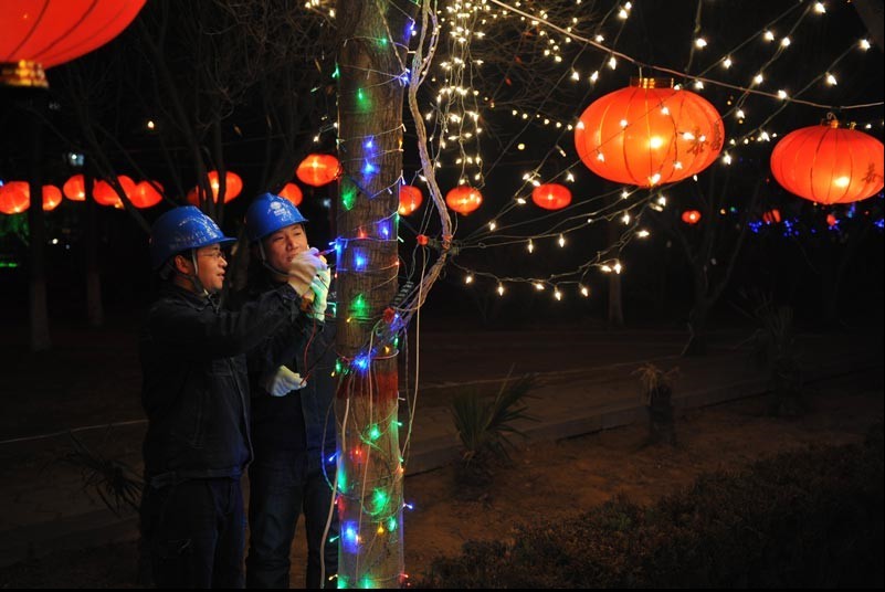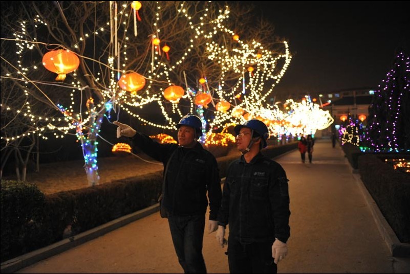 為確保全市人民度過一個光明溫馨,美麗壯觀的蛇年燈節(jié),河南登封市電業(yè)局在做好安全供電的同時,還組織120名人員對15個燈展集中區(qū)域進行臨時用電安全指導(dǎo)和隱患排查。圖為2月20日,該局員工在嵩陽書院對臨時用