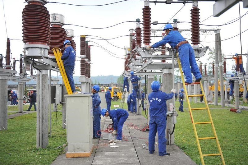 4月22日,四川成都電業(yè)局搶修隊在抓緊時間搶修雅安蘆山110千伏金華變電站?! 〗刂?月23日,成都電業(yè)局搶修隊已完成斷路器、101開關(guān)儲能繼電器更換,完成對金苗線114開關(guān)二次回路的排查,為新安裝的114開關(guān)