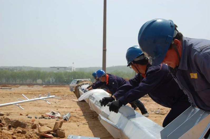 棲霞國(guó)際廣場(chǎng)是棲霞市政府招商引資的重點(diǎn)項(xiàng)目之一,因棲霞公司10千伏冷庫(kù)線原有7基電桿恰巧在工程施工區(qū)域內(nèi),給工程施工造成很多安全隱患和不便,為了保證工程順利進(jìn)行,棲霞公司決定緊急為項(xiàng)目建設(shè)改線讓路,拆除原有電桿,在白洋河兩側(cè)新組立鋼管塔4基。