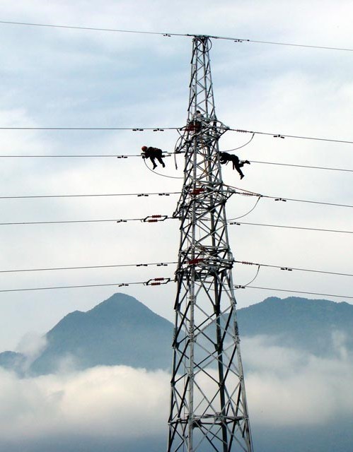 針對(duì)夏季雷電暴雨頻發(fā)特點(diǎn),連日來(lái),巴東縣供電公司集中人力、時(shí)間對(duì)雷電密集區(qū)域輸電線路桿塔接地裝置、絕緣子進(jìn)行檢修更換,以減少雷電對(duì)輸電線路的危害,確保電網(wǎng)安全運(yùn)行。圖為:5月19日,供電員工在更換3