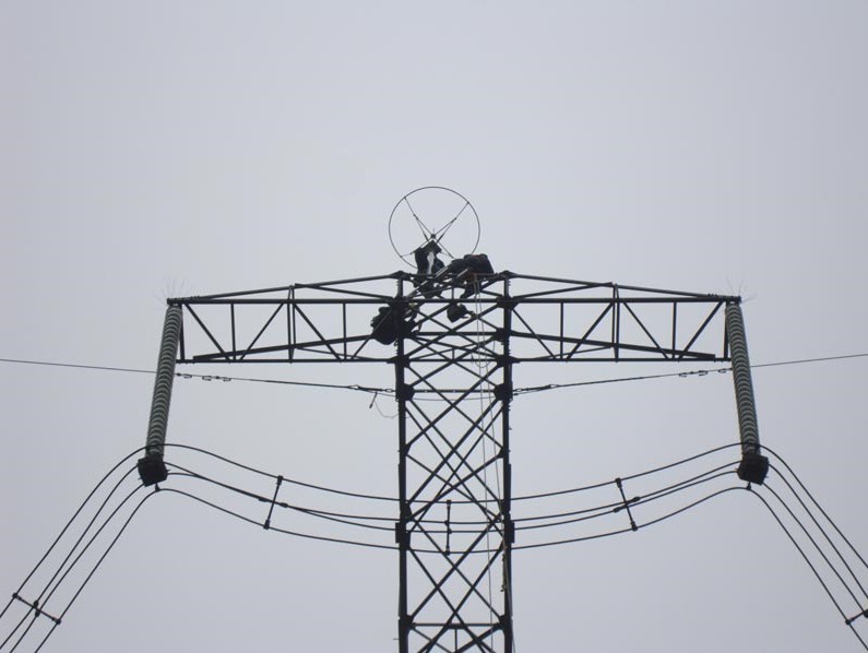 2013年6月2日,在安徽省定遠縣倉鎮(zhèn)北鄭村,二名電力職工正在80多米的高空作業(yè),對500千伏淮南市洛(河)至滁州市清(流)5309輸電線路進行維護、維護。當(dāng)日,安徽送變電工程公司組織100多名技術(shù)人員對500千伏洛清5309電力線路進行檢修,以確保華東地區(qū)工農(nóng)業(yè)生產(chǎn)用電。截止發(fā)稿,檢修人員已完成全長112.6公里供電線路的281基鐵塔檢修維護工作。