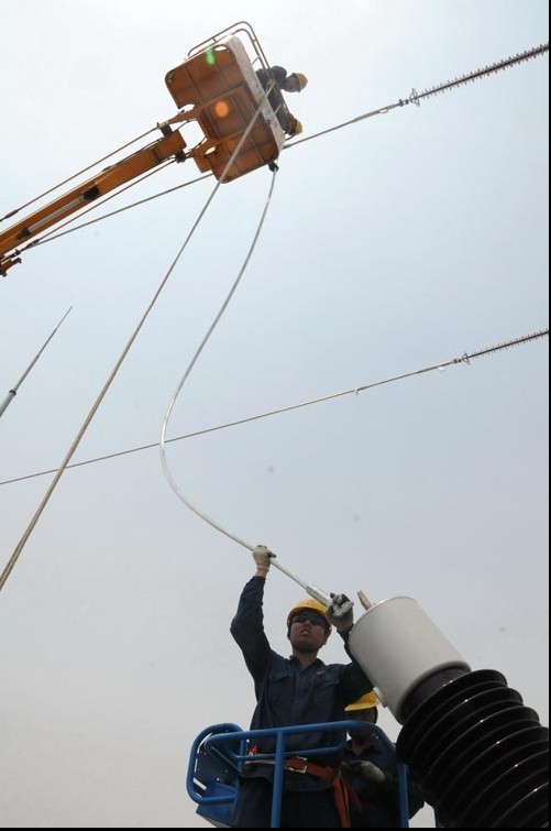 6月17日,河南省開封供電公司職工頂著烈日,冒著37度以上高溫,奮戰(zhàn)在省迎峰度夏重點工程220千伏景文變電站擴建工程建設(shè)工地,加緊進行電氣設(shè)備安裝,確保該工程6月下旬竣工投運,為蘭考縣夏季用電高峰提供安全可靠的供電保障。