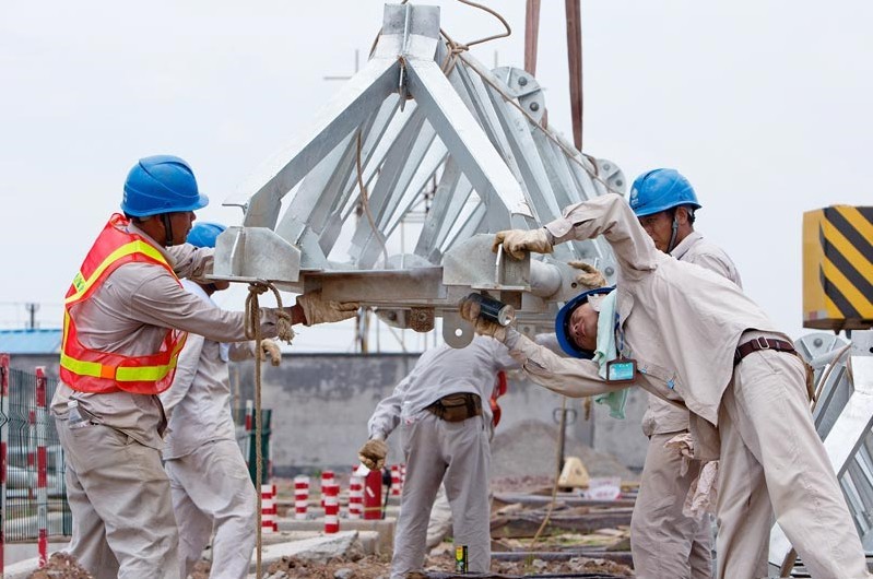 7月3日,國家電網(wǎng)浙江金華供電公司工作人員在武義縣城郊220千伏瑩鄉(xiāng)變電站建設(shè)工地安裝電網(wǎng)設(shè)備。當(dāng)日,國家電網(wǎng)浙江金華供電公司送變電工程有限公司40多名工作人員,冒著38攝氏度高溫,揮汗如雨,奮戰(zhàn)在建設(shè)一線,安裝組塔作業(yè),加快電網(wǎng)建設(shè),提高電網(wǎng)輸送能力。