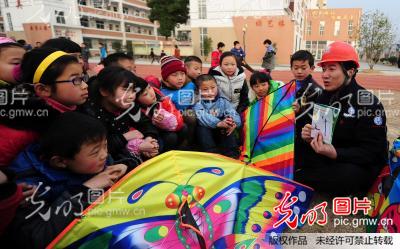 2014年3月4日,國網(wǎng)安徽肥西縣供電公司員工向孩子們講解放風(fēng)箏安全常識。陽春三月,又到了放風(fēng)箏的好時節(jié)。3月4日,國網(wǎng)安徽肥西縣供電公司員工來到上派鎮(zhèn)麗景小學(xué),為學(xué)校的學(xué)生們上了一堂春季放風(fēng)箏安全課,現(xiàn)