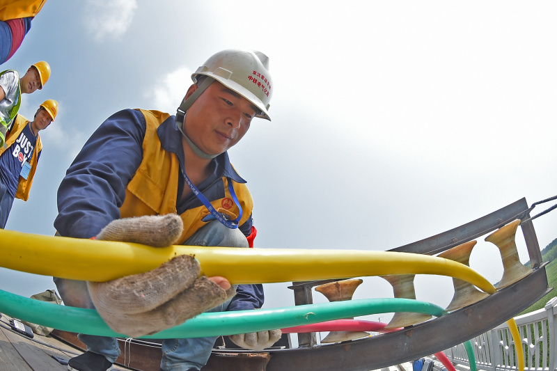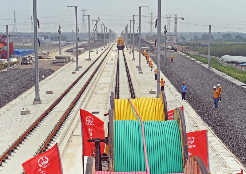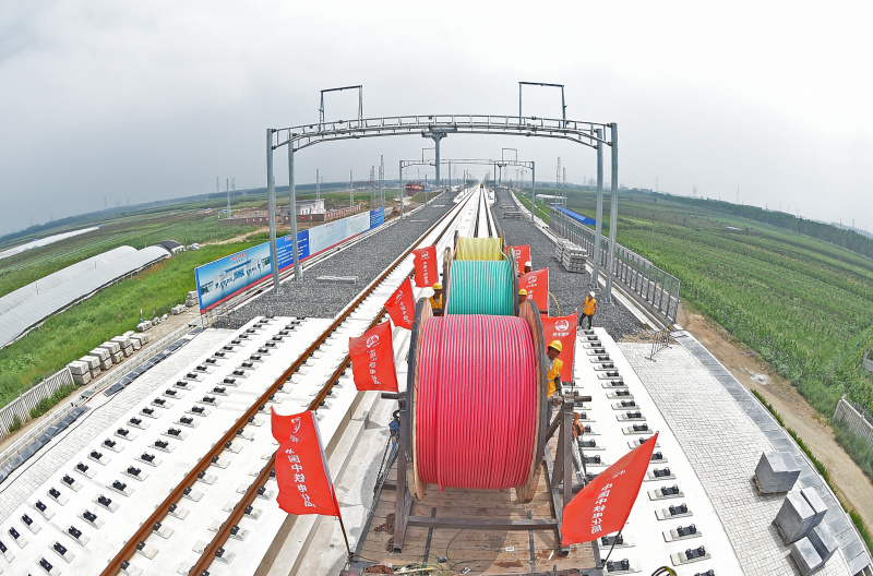 7月18日,中鐵電氣化局工程技術(shù)人員在敷設(shè)電力高壓電纜。當日,在京沈高鐵遼寧段沈陽西站至 新民北站區(qū)間,中鐵電氣化局工程技術(shù)人員開始敷設(shè)電力高壓電纜。電力高壓電纜敷設(shè)屬于高鐵建設(shè)電氣化施工的關(guān)鍵環(huán)節(jié),