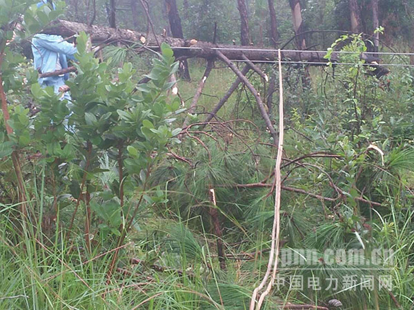 當(dāng)天14點(diǎn)許,塔甸供電所工作人員接到縣調(diào)電話(huà),10千伏西科線(xiàn)接地拉閘,需要巡視線(xiàn)路排除故障。塔甸供電所員工立即行動(dòng),收拾好工具,拿上雨衣、手電筒上車(chē)出發(fā)。經(jīng)過(guò)一個(gè)多小時(shí)的巡查,終于找到故障點(diǎn),在10千伏西科線(xiàn)1.18號(hào)桿處,一棵直徑有碗大的松樹(shù)被風(fēng)刮斷,壓在線(xiàn)路上造成線(xiàn)路接地跳閘。塔甸供電所員工不顧風(fēng)雨,扛著電鋸、吊繩、砍刀等工具爬上半山坡,開(kāi)始緊急搶修。經(jīng)過(guò)三個(gè)多小時(shí)的奮戰(zhàn),才將故障處理完畢,于20時(shí)17分全線(xiàn)恢復(fù)供電。