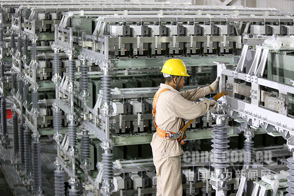 中電新聞網(wǎng)訊 通訊員 湯德宏 報道 7月31日,電力作業(yè)人員正在蘇州南部電網(wǎng)500千伏統(tǒng)一潮流控制器(UPFC) 示范工程閥廳內(nèi)進行換流閥安裝。 當日,位于江蘇蘇州的500千伏“統(tǒng)一潮流控制器”示范工程加緊施工,目前,該工程全面進入電氣設(shè)備安裝調(diào)試高峰。