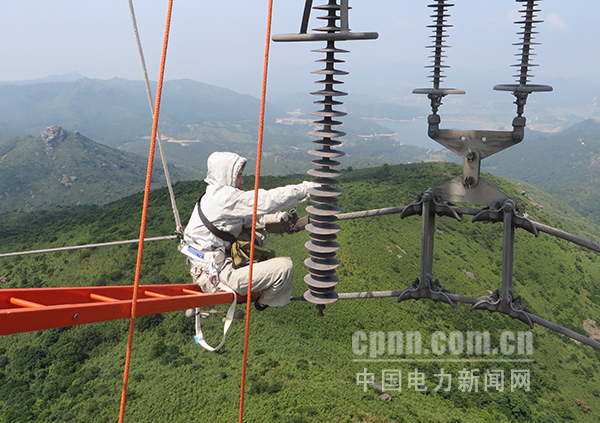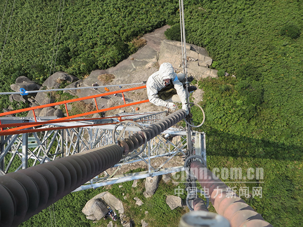 中電新聞網訊 通訊員 陳蒸 陳德鈞 林信恩 報道 7月25日,福建福州供電公司輸電運檢室?guī)щ娮鳂I(yè)班工作人員冒著高溫在長樂220千伏西田II路19號塔上帶電拆除受損三相避雷器,消除線路隱患,確保迎峰度夏期間的安全可靠供電。