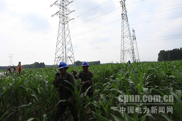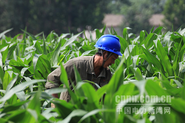 臨近11點(diǎn),氣溫即將達(dá)到最高點(diǎn),在一人高的玉米地里,沒(méi)有一絲風(fēng),塔上塔下,施工人員仍然在緊張、高效地忙碌著。