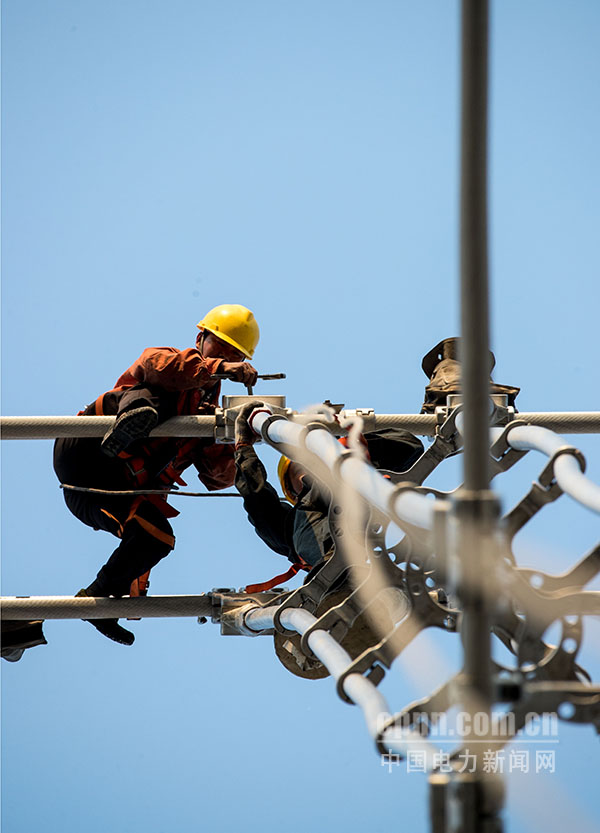 這是5月17日拍攝的上海送變電施工人員在錫盟-泰州±800千伏特高壓泰州變電站進(jìn)行設(shè)備調(diào)試。標(biāo)志著錫盟-泰州±800千伏特高壓輸