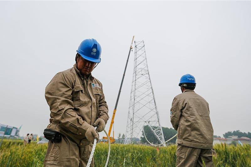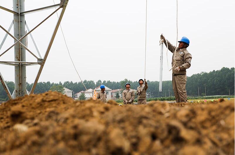 【背景】 施工人員在內蒙古錫盟-江蘇泰州±800千伏特高壓直流輸電線路工程連云港市贛榆段沙河鎮(zhèn)施工現(xiàn)場進行直流輸電線路工程鐵