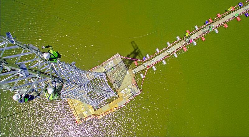 該施工地點(diǎn)為黃梅110千伏城南變電站配套線路跨越高速公路7#鐵塔施工現(xiàn)場(chǎng),也是該工程僅剩的最后一基鐵塔組立現(xiàn)場(chǎng)。施工人員克服水中作業(yè)困難,積極探索創(chuàng)新,采取水面懸浮式作業(yè)平臺(tái)進(jìn)行鐵塔組立施工,為施工創(chuàng)造了安全、平穩(wěn)、快速施工環(huán)境。該工程預(yù)計(jì)五月中下旬送電,將是黃岡首批投產(chǎn)送電中央預(yù)算農(nóng)網(wǎng)高壓提速工程。