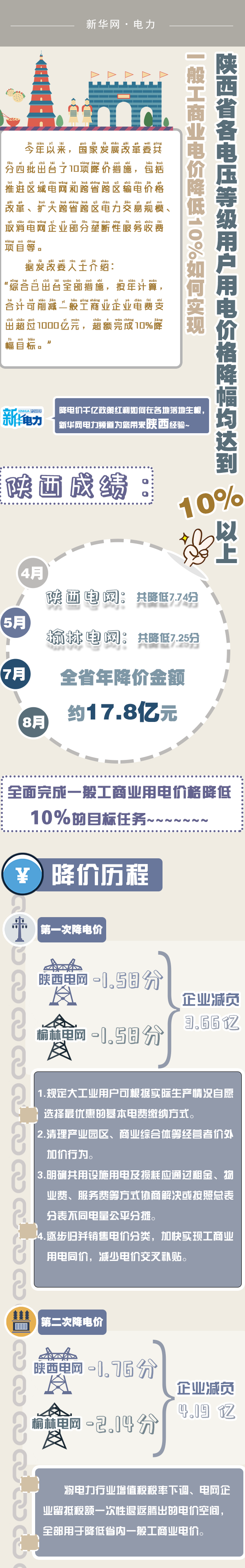 圖說|一般工商業(yè)電價降低10%如何實現(xiàn) 陜西各電壓等級用戶電價降幅均達標