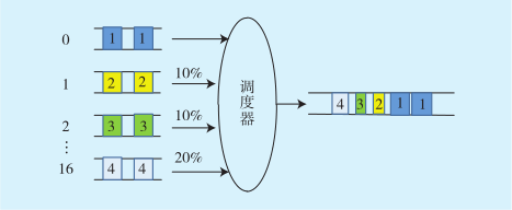 [17]的方式按照預先配置的寬帶比例依次從1~16分組中發(fā)送一部分報文出去。CQ調度算法原理如