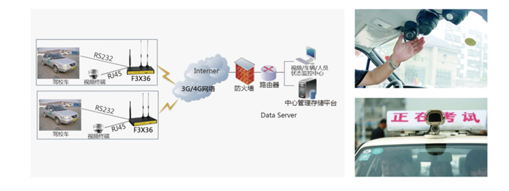為有效預(yù)防事故,把牢安全管理源頭,規(guī)范駕駛?cè)丝荚?,各地陸續(xù)落實公安部交通管理局加強機動車駕駛?cè)斯芾碇笇?dǎo)意見,在駕照考車上加安裝攝像頭,通過四信4G工業(yè)路由器與后方平臺相連接,對汽車類駕駛?cè)丝荚嚳颇繉嵭幸曨l、音頻監(jiān)控,在移動中將車內(nèi)的視頻監(jiān)控和數(shù)據(jù)及時傳輸?shù)奖O(jiān)控中心。在各科考試成績單上打印3張隨機抓拍的考試照片,考試錄像將留存1年以上。