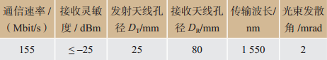 表1 Fiberless 155型光通信機指標Tab.1 Parameters of Fiberless155 optical communication machine