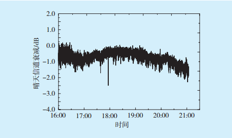 圖5 晴天條件下大氣信道衰減隨時間變化曲線Fig.5 Curve of atmospheric channel attenuation versus time in sunny day