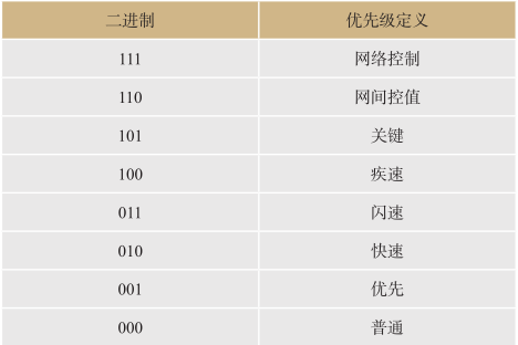 由RFC1122規(guī)定,三層報文表頭中前3位為IP優(yōu)先級標志位。
