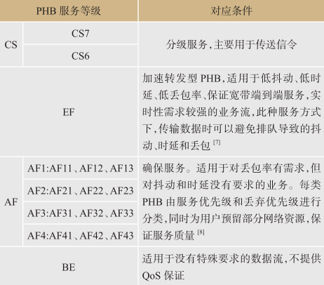 由于新能源接入網以不同的通信協(xié)議為基礎,不同協(xié)議中各類報文傳輸?shù)目煽啃院蜁r延需求在電網中需要得到保證,因此文章對電網差異化QoS原理進行研究。文章主要研究數(shù)據(jù)流分類及標記技術、數(shù)據(jù)流量管理及整形技術、擁塞管理和規(guī)避機制以及幾種經典隊列調度算法的比較,給出了標記技術
