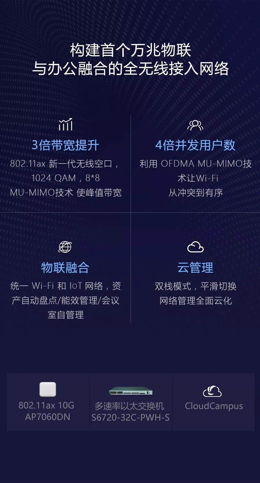該方案不僅將AP的無(wú)線帶寬提升3倍,并發(fā)用戶數(shù)提升4倍,還首次實(shí)現(xiàn)了10Gbps能力的Wi-Fi與藍(lán)牙、Zigbee、RFID等物聯(lián)技術(shù)混合接入。