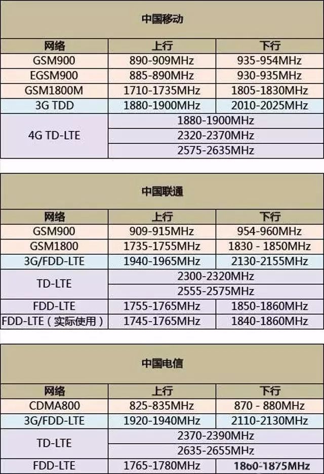 三大運(yùn)營(yíng)商頻率劃分
