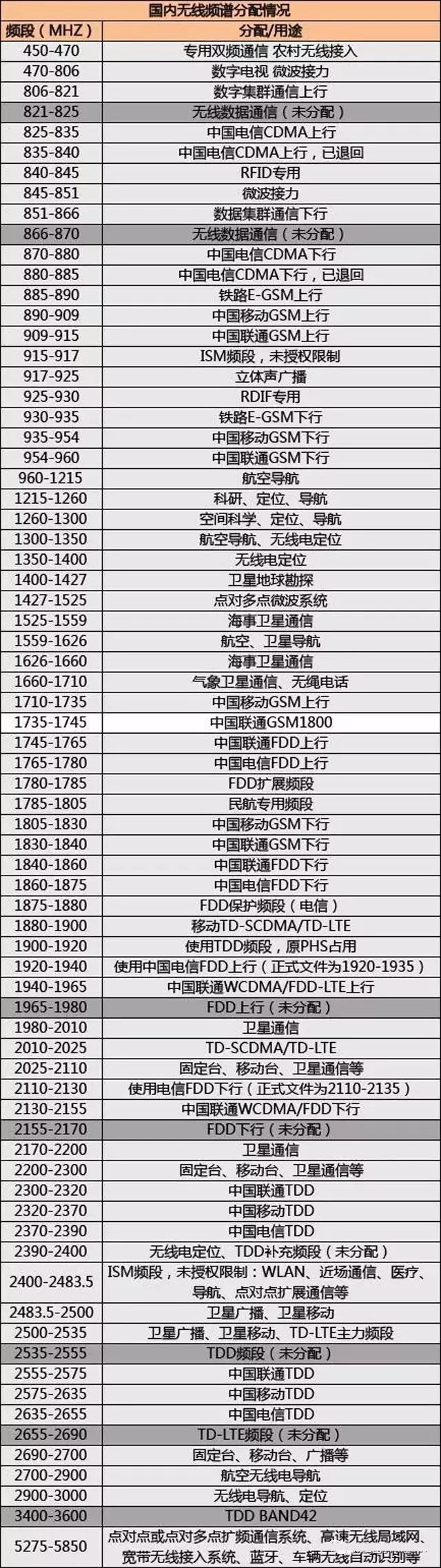 史上最全最詳細(xì)無(wú)線通信頻率分配表
