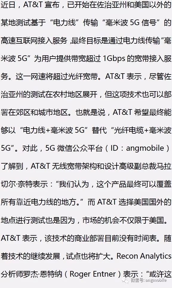 AT&T:以“電力線+5G”代替“光纖+5G”