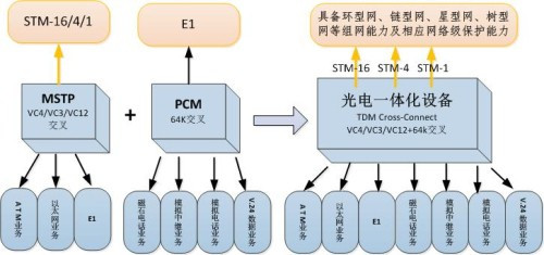 近年來推向市場的光電一體化設(shè)備,是針對電力行業(yè)實(shí)際業(yè)務(wù)需求出發(fā),在MSTP與PCM設(shè)備基礎(chǔ)上加以改進(jìn)開發(fā)而成。其不僅具有PCM業(yè)務(wù)接入功能,支持64K時(shí)隙交叉,同時(shí)還提供TDM、以太網(wǎng)業(yè)務(wù)接入,支持MSTP高、低階交叉,系統(tǒng)側(cè)支持STM-16/4/1標(biāo)準(zhǔn)光接口。