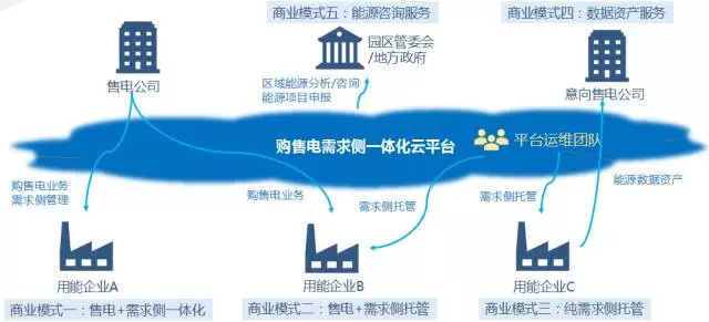純售電公司和能源服務(wù)商進(jìn)行合作,提供售電服務(wù)以及需求側(cè)管理托管服務(wù)。
