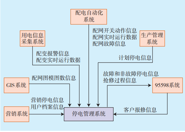 2)與95598系統(tǒng)接口:接收95598系統(tǒng)提供的客戶報(bào)修工單,并將停電信息及搶修過程信息發(fā)送至95598系統(tǒng),以便告知客戶。