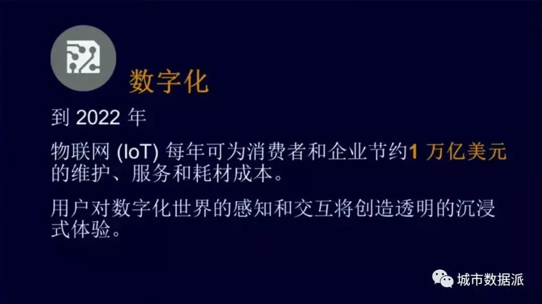 我們有個預(yù)計,2020年物聯(lián)網(wǎng)可以幫助企業(yè)節(jié)約1萬億美元的維護、服務(wù)和耗材成本。用戶對數(shù)字化的體驗將會是一個沉浸式的體驗,就是我沉入到數(shù)字化的世界感覺像真實的世界一樣。
