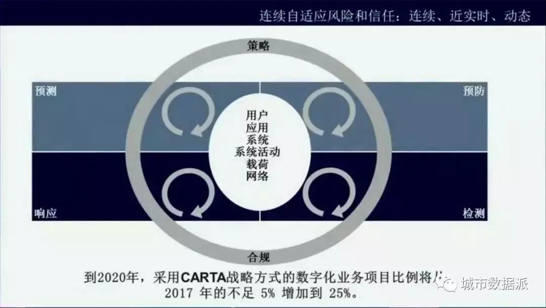 最后一個叫做連續(xù)自適應(yīng)風(fēng)險和信任,英文縮寫是CARTA。這是比較難以理解的詞。我們可以把它理解為在數(shù)字化時代新的風(fēng)險,安全防范的措施,新的風(fēng)險防范措施是把人工智能的技術(shù)運用到了安全的領(lǐng)域。