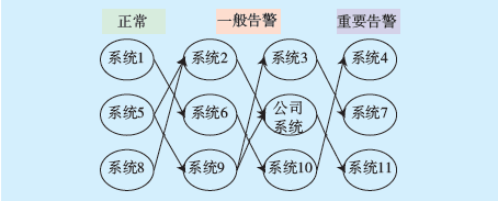 圖2為某系統(tǒng)應(yīng)用拓?fù)鋱D,該系統(tǒng)共調(diào)用系統(tǒng)服務(wù)12個,且各服務(wù)調(diào)用響應(yīng)時間均較少,系統(tǒng)運(yùn)行狀態(tài)良好。若某應(yīng)用響應(yīng)過慢,系統(tǒng)圓形圖標(biāo)會改變?yōu)橄鄳?yīng)狀態(tài)顏色,方便運(yùn)維人員及時發(fā)現(xiàn)問題。