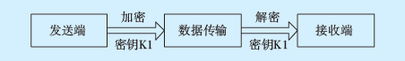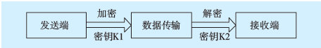 SSL傳輸數(shù)據(jù)使用對(duì)稱加密技術(shù)來(lái)確保數(shù)據(jù)安全性。對(duì)稱加密技術(shù)使用對(duì)稱密鑰和加密算法,發(fā)送方使用密鑰K1對(duì)原始數(shù)據(jù)進(jìn)行加密,然后將密文發(fā)出;接收方通過(guò)使用相同的密鑰和加密算法的反向形式,將被加密數(shù)據(jù)重新還原。加密之后,只有知道加密算法和會(huì)話密鑰才能得到正確的原始數(shù)據(jù)。對(duì)稱加密算法流程如圖2所示。