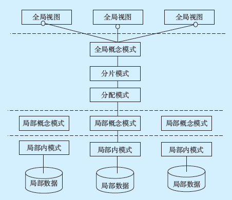 在運維數(shù)據(jù)全采集后,形成的數(shù)據(jù)將會是海量數(shù)據(jù),數(shù)據(jù)庫必須具備高可擴展性、高并發(fā)性、高可用性等特點,傳統(tǒng)數(shù)據(jù)庫存在性能瓶頸,不能有效支撐對運維數(shù)據(jù)的集中分析和運算,因此需采用分布式數(shù)據(jù)庫[4]。分布式模式如圖3所示。