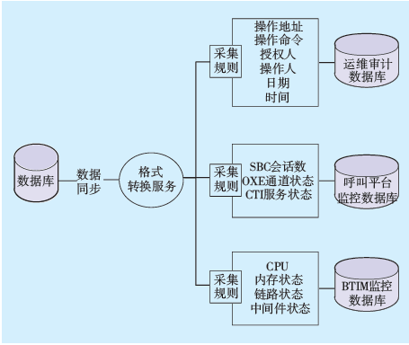 通過商業(yè)軟件和定制開發(fā)的方式對運維范圍內(nèi)信息系統(tǒng)進行監(jiān)控,各監(jiān)控系統(tǒng)均有一套數(shù)據(jù)存儲系統(tǒng)[3]。為實現(xiàn)數(shù)據(jù)的統(tǒng)一存儲和綜合利用,需具備一套數(shù)據(jù)收集組件進行存儲數(shù)據(jù)的格式轉(zhuǎn)換、抽取,同時該組件支持抽取規(guī)則定制,可對抽取數(shù)據(jù)的數(shù)據(jù)量、數(shù)據(jù)種類、轉(zhuǎn)換格式、源端、目標端進行復制。數(shù)據(jù)收集組件如圖2所示。