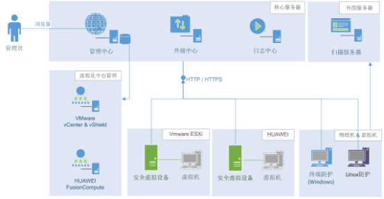 瑞星虛擬化系統(tǒng)安全軟件采用分布式的體系結(jié)構(gòu),結(jié)構(gòu)清晰明了,管理維護(hù)方便。整個防病毒體系是由五個相互關(guān)聯(lián)的子系統(tǒng)組成:管理中心、安全虛擬設(shè)備、日志中心、升級中心、查殺協(xié)作。各個子系統(tǒng)協(xié)同工作,共同完成對整個虛擬化平臺的病毒防護(hù)工作,為企業(yè)級用戶的虛擬化系統(tǒng)提供全方位防病毒解決方案。