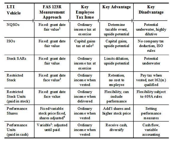 4.對每種LTI激勵形式的優(yōu)缺點進行了評估,表1.1總結(jié)了薪酬委員會的這些結(jié)論。