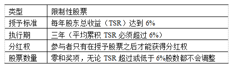 薪酬委員會決定實施限制性股票激勵,且達到預(yù)定的股東總收益目標才能授予。影響薪酬委員會選擇該LTI計劃的主要因素包括: