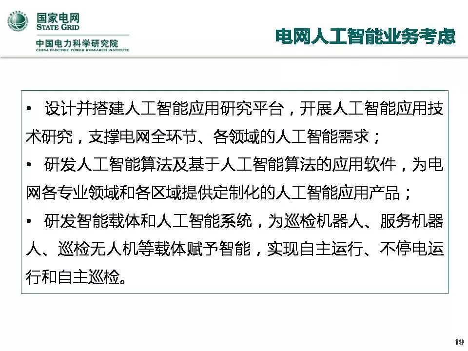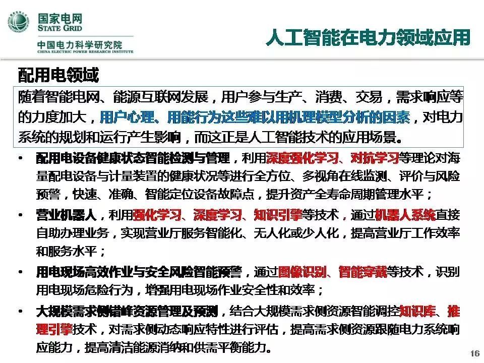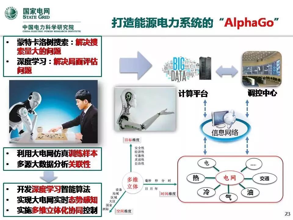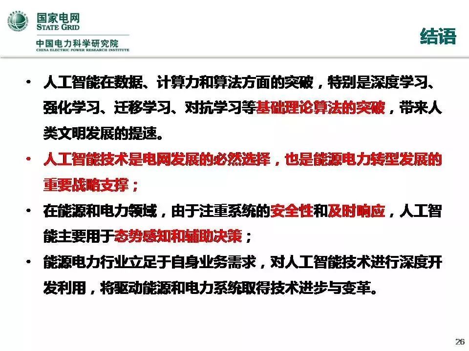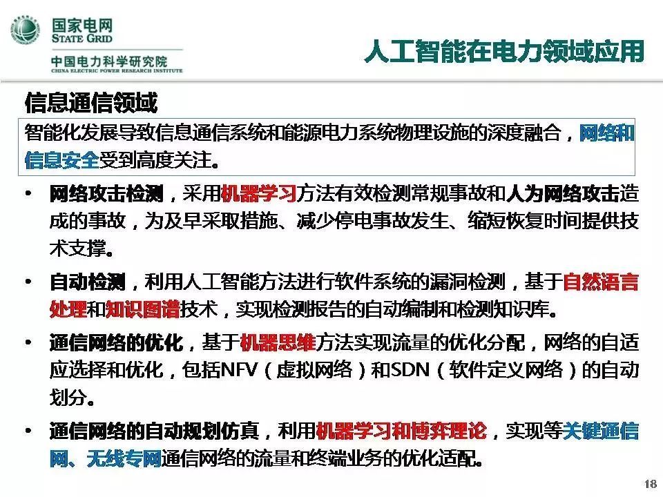 人工智能是當(dāng)前最具顛覆性的技術(shù)之一,各國政府、研究機(jī)構(gòu)和企業(yè)已積極行動(dòng),制定技術(shù)戰(zhàn)略、密切跟蹤最新技術(shù)發(fā)展。為探討人工智能技術(shù)在電力領(lǐng)域的應(yīng)用前景和方向,尋找人工智能在電力領(lǐng)域的著力點(diǎn)和突破點(diǎn),中國電科院于12月6日召開主題為“人工智能在電力領(lǐng)域的研究應(yīng)用方向和關(guān)鍵技術(shù)”的二零八科學(xué)會(huì)議,中國科學(xué)院院士周孝信、中國電科院總工程師湯涌、副總經(jīng)理(副院長)王繼業(yè)、副總經(jīng)理(副院長)高克利出席會(huì)議,來自國網(wǎng)公司、科研單位、高等院校的50余位專家參加。會(huì)上,中國電科院副總經(jīng)理(副院長)王繼業(yè)作了題為“人工智能在能源電力領(lǐng)域的探索”的報(bào)告,分享給大家。