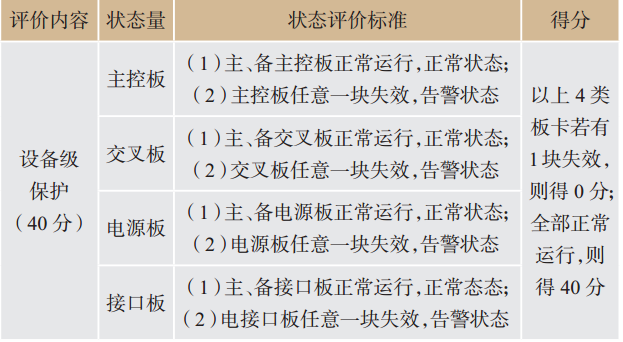 針對以上4類板卡,提出的設備級保護狀態(tài)評價標準及評分細則見表2所列。